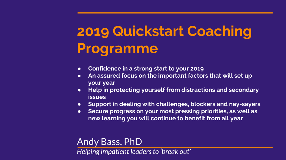 Find out more about my 90 Day coaching programme: Andy Bass’s 2019 Quickstart Coaching Programme.